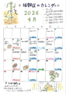 坂部区の日常ブログ 坂部区カレンダー坂部区カレンダー 4月New!!2026年3月31日坂部区ごみカレンダー令和8年度(2026年度)坂部地区ごみ収集カレンダーNew!!2026年3月26日実行委員会(町内会活動・委員会)坂三生き生きクラブ(2026年3月21日開催)2026年3月21日坂部区の日常本間翁坤徳之碑献花式2026年3月20日実行委員会(町内会活動・委員会)坂二井戸端亭2026年3月11日坂部区カレンダー坂部区カレンダー 3月2026年3月2日 一覧を見る カテゴリ一覧 坂口谷川河津桜 坂部区カレンダー 坂部区ごみカレンダー 坂部区だより 坂部区の日常 実行委員会(町内会活動・委員会) 道の駅【そらっと牧之原】 バックナンバーはこちら