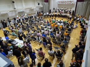 祭りに備えて毎晩練習してきた子供たちの屋台「祭魂会(さいたまかい)」の笛や太鼓の音色が響き「御囃子(おはやし)」は「さくら日本大満開・ハレハレ祭り」など賑やかに子供も皆で踊る総踊り、和気あいあいで楽しそうです。(⌒∇⌒)