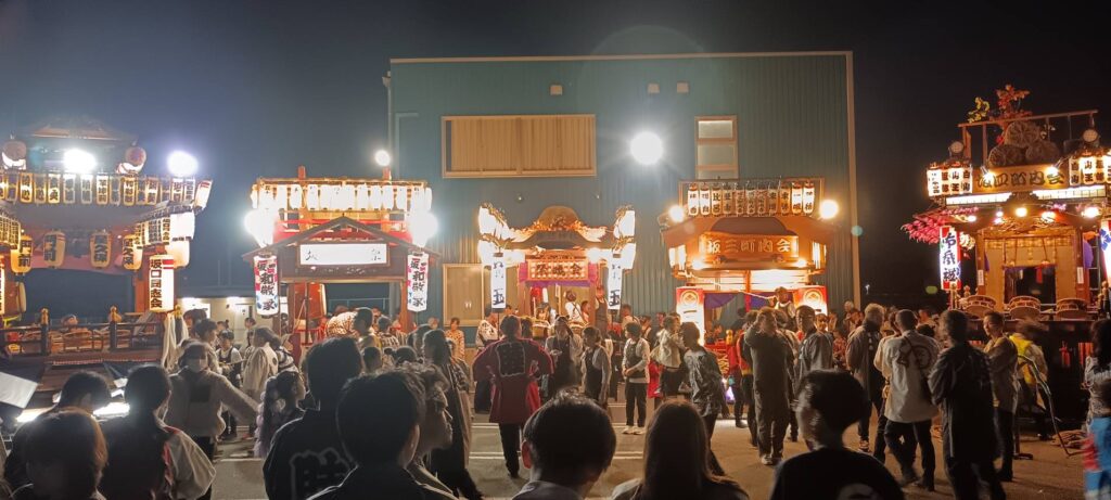 (屋台は賑やかに2町内会全域をも披露してくれました。)