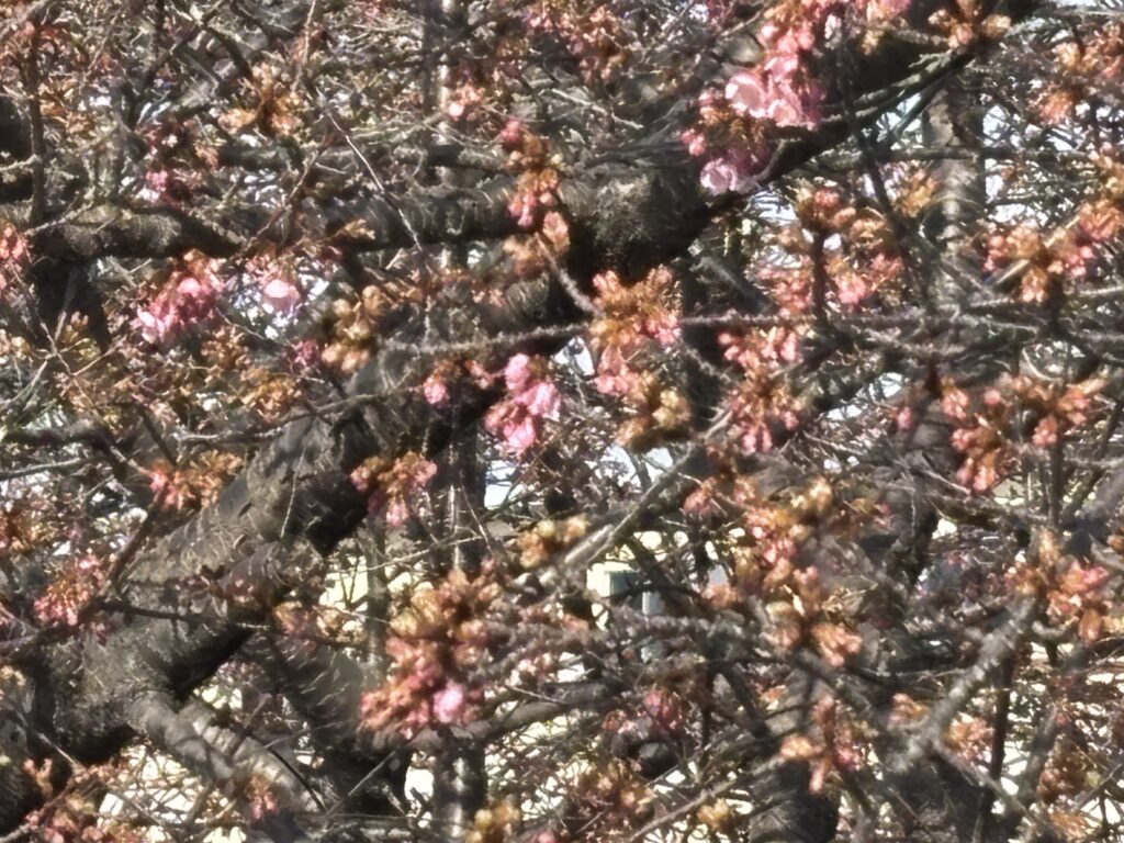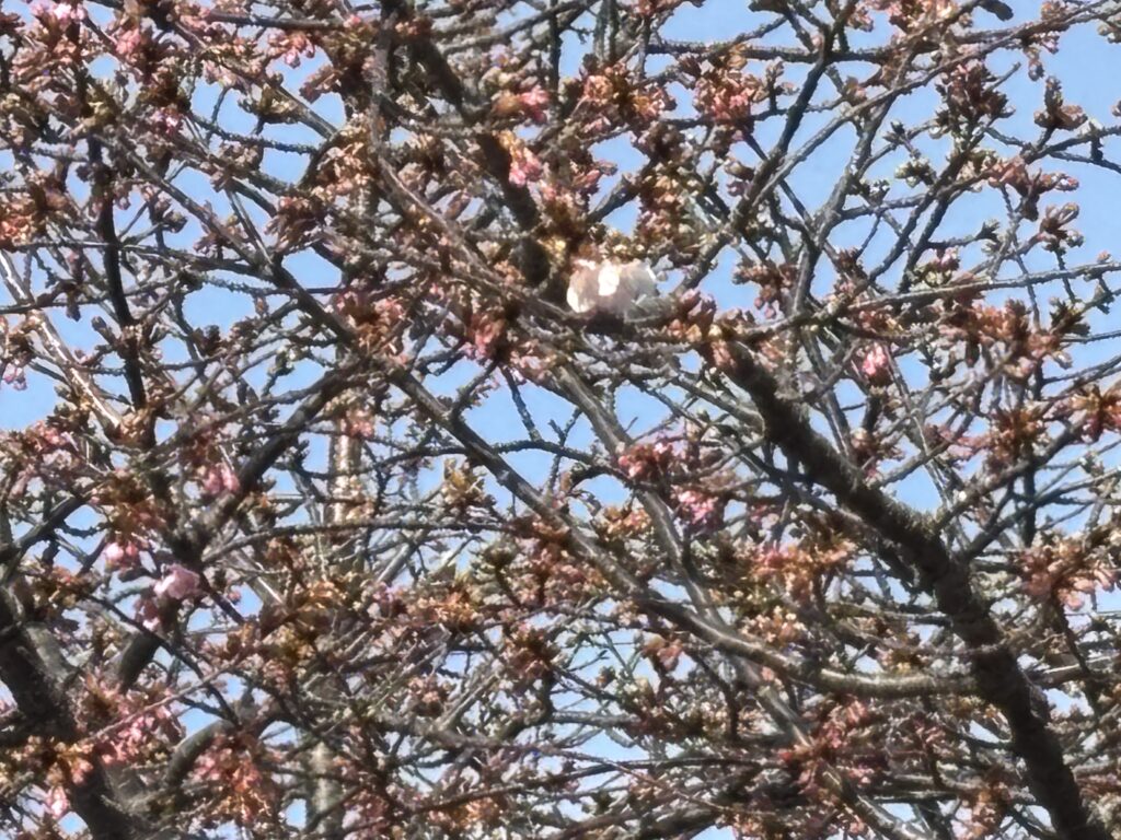 今日も暖かく春が来たみたいです。つぼみが更に膨らみ、ちらほら咲き始めています。